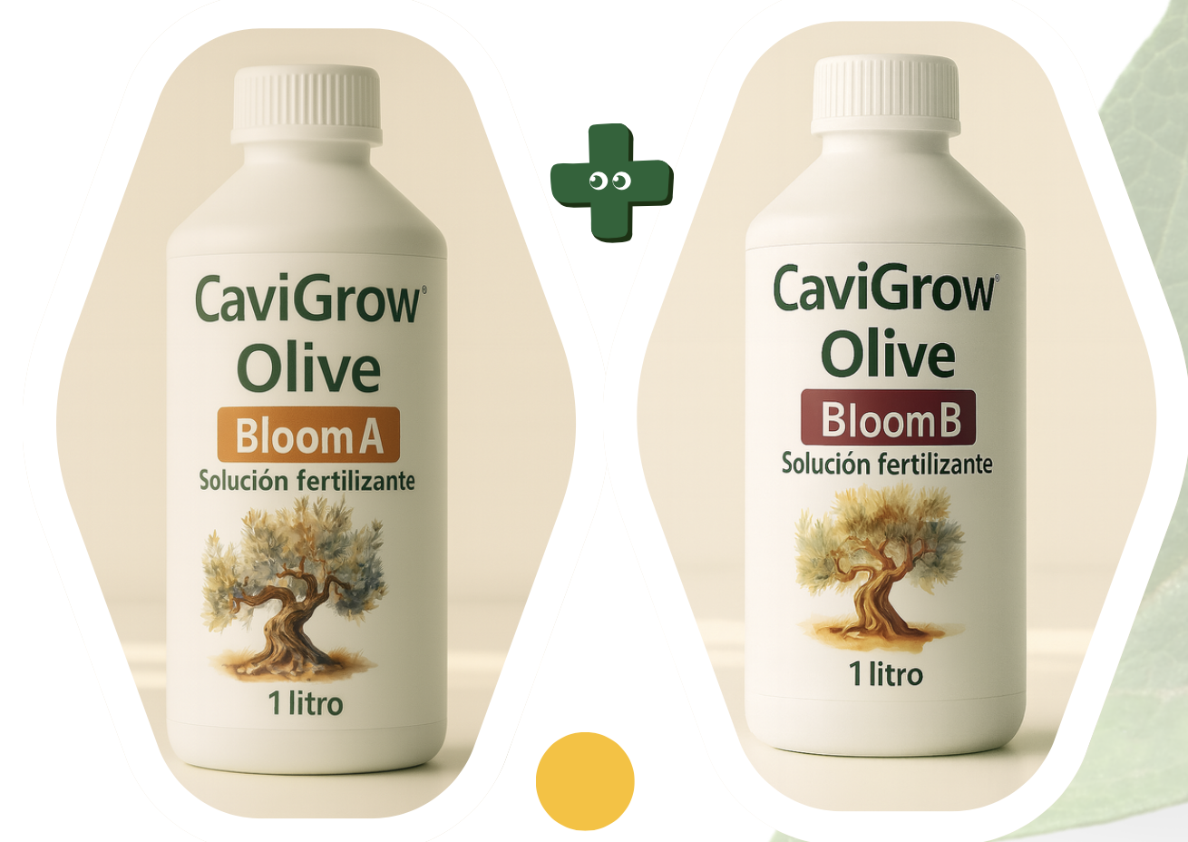 Maximice la floración y el cuajado de su olivar con CaviGrow Bloom Olive (A+B). Diseñado para asegurar una polinización eficiente y una formación óptima del fruto en sus olivos.