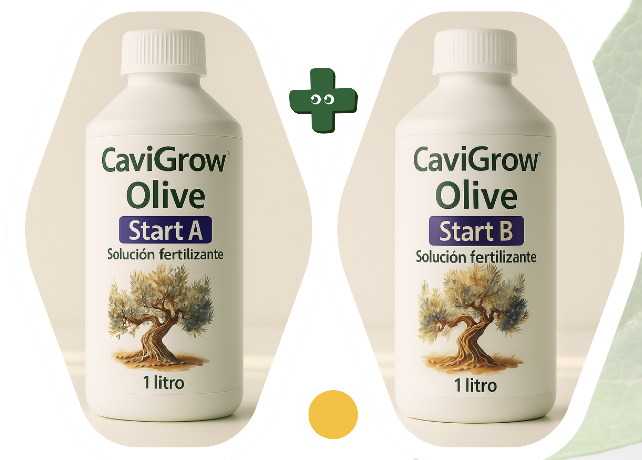 Optimice el establecimiento de su plantación de olivar con CaviGrow Start (A+B). Nutrición de precisión para un enraizamiento fuerte и un desarrollo inicial vigoroso de sus olivos.
